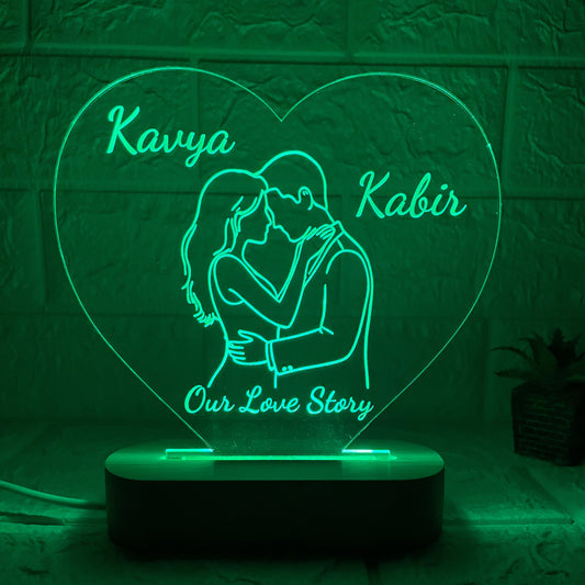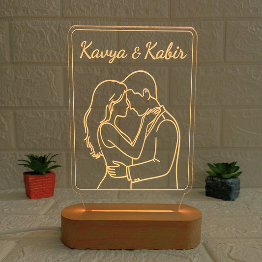 Personalised 3D Illusion Couple Name LED Acrylic Lamp with Wooden Base | Romantic Decorative Night Light for Anniversary, Valentine’s Day, or Wedding Gift (DNFICO9)
