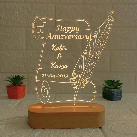 Nexify Fusion Personalised Anniversary Acrylic Lamp with Wooden Base | Custom Couple Names Night Light |Custom Engraved Scroll & Quill Design | Anniversary Gift for Couples (DNFSQ12)