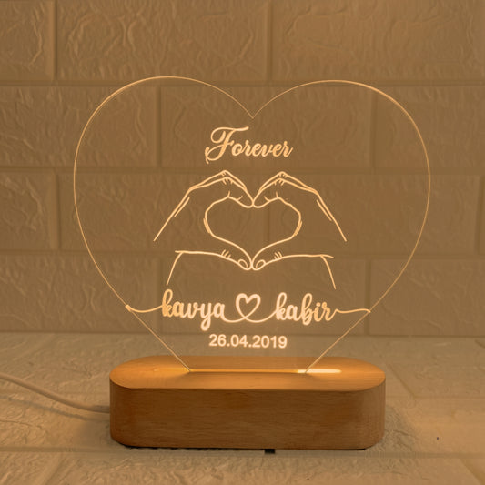 Personalised 3D Illusion Couple Hand LED Acrylic Lamp with Names & Date | Customised “You & Me Forever” Night Light with Wooden Base | Romantic Gift for Couples (DNFIHA7)
