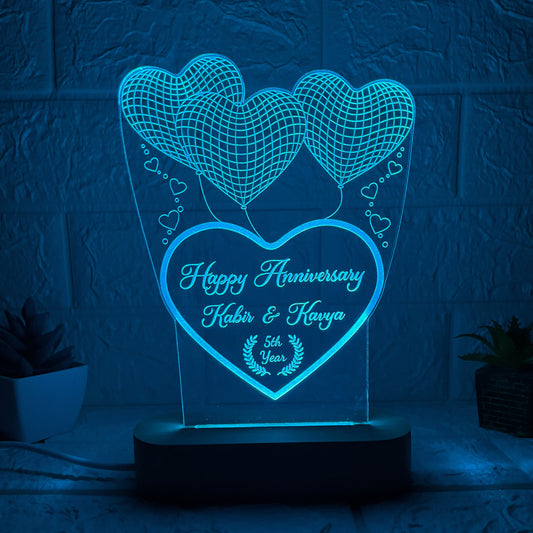 Nexify Fusion Personalised 3D Illusion Happy Anniversary LED Lamp with Couple Names & Year | 3Heart Design Night Lamp with Wooden Base | Unique Gift for Anniversary | Multicolor (DNFHEA8M)