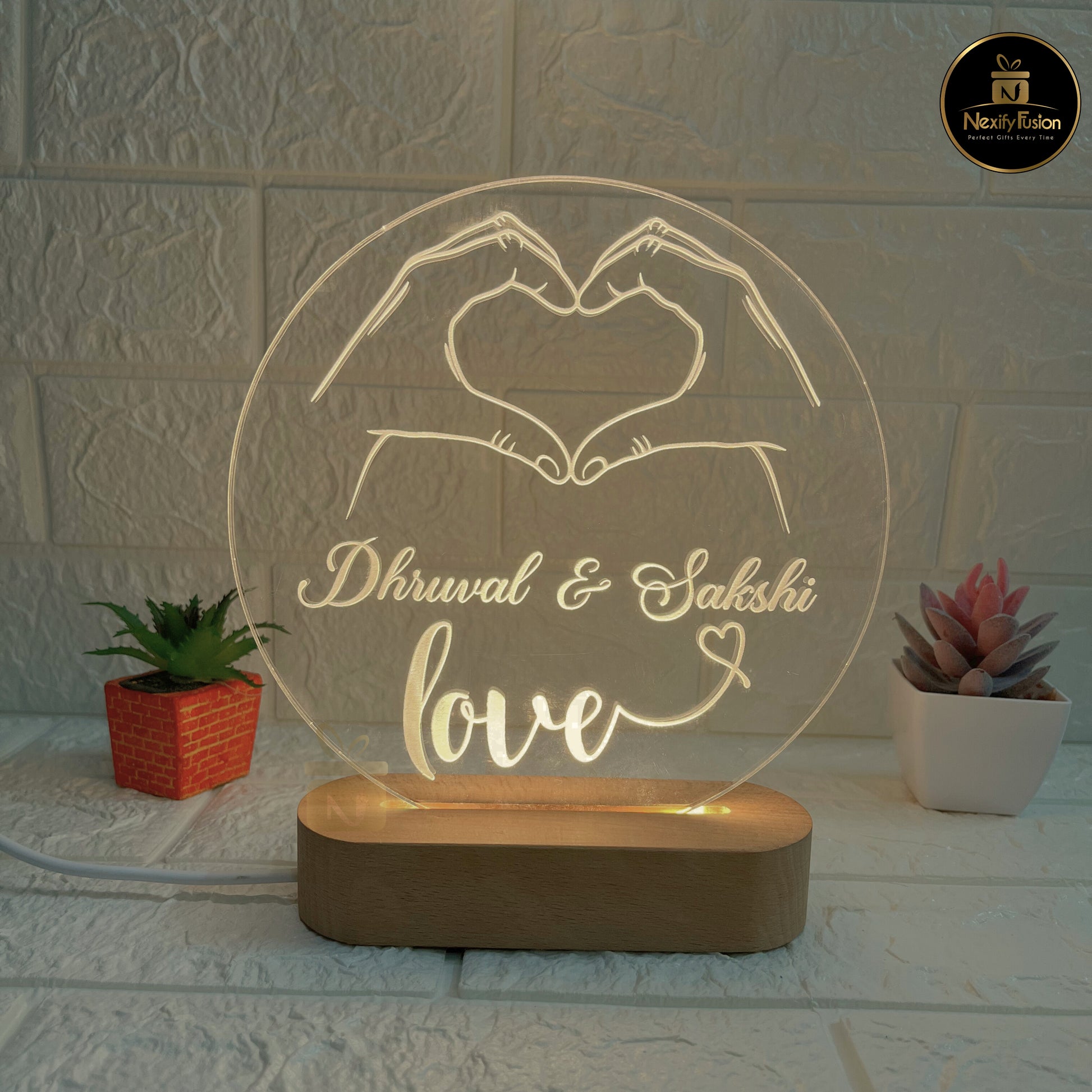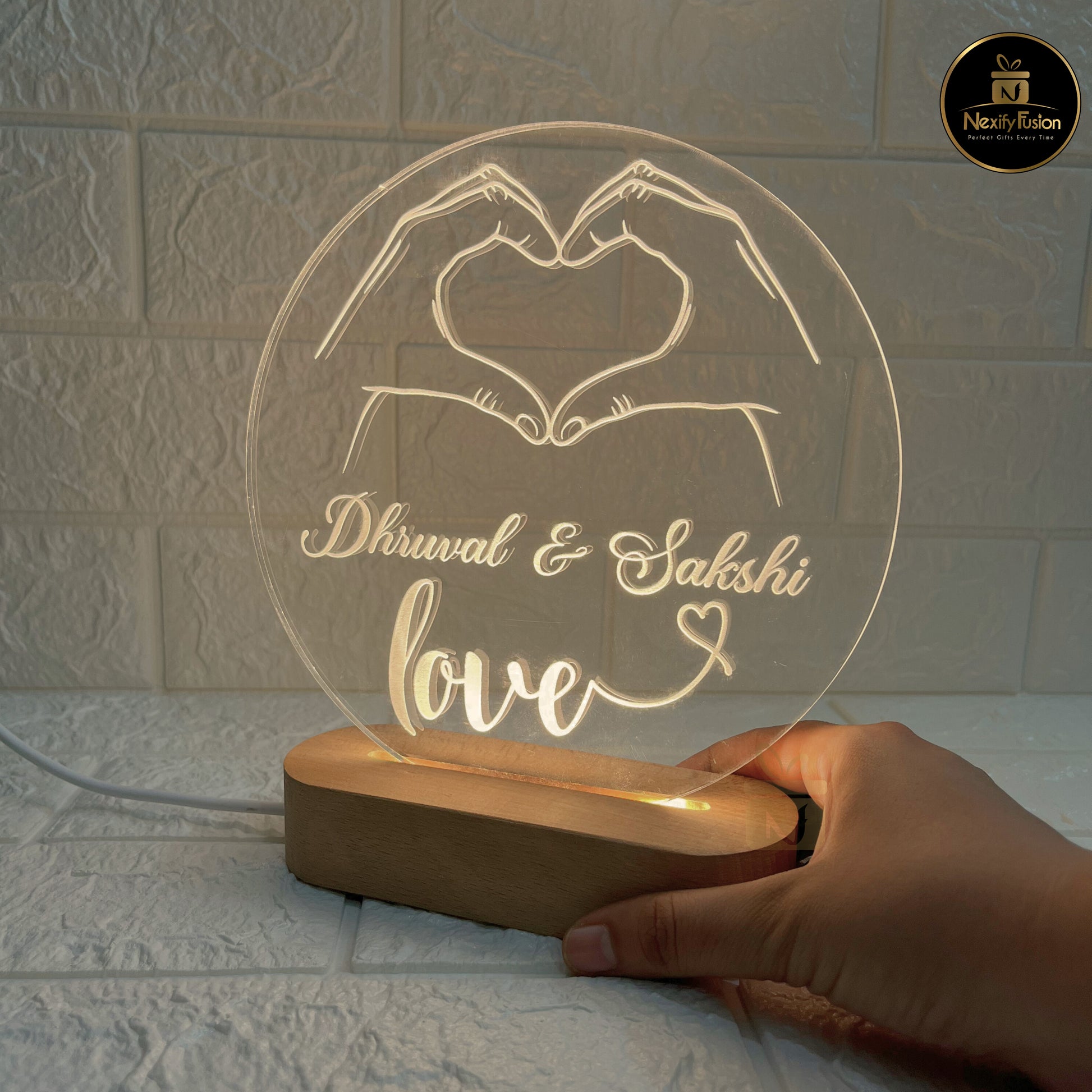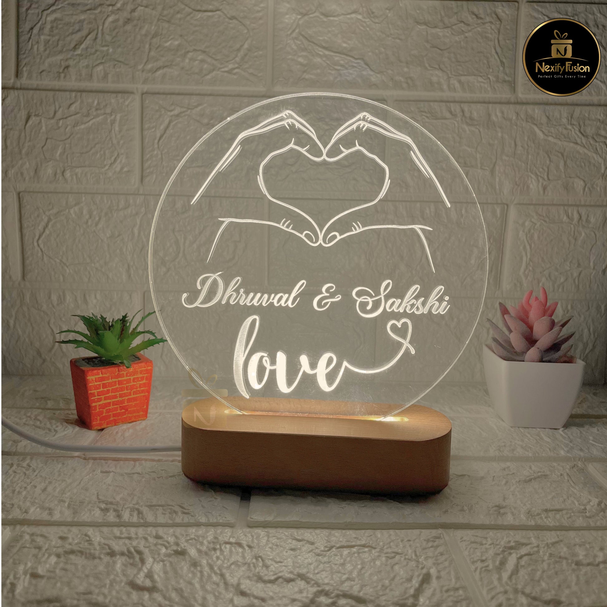 Celebrate love with this Personalized Heart Hands LED Acrylic Lamp, specially crafted with your names and date engraved in a romantic design. Perfect as a custom couple gift, it adds a warm glow to your bedroom or living room while keeping your memories alive. Ideal for Anniversary, Wedding, Valentine’s Day, or Birthday gifts, this LED night lamp is not just a decor item but a symbol of love.